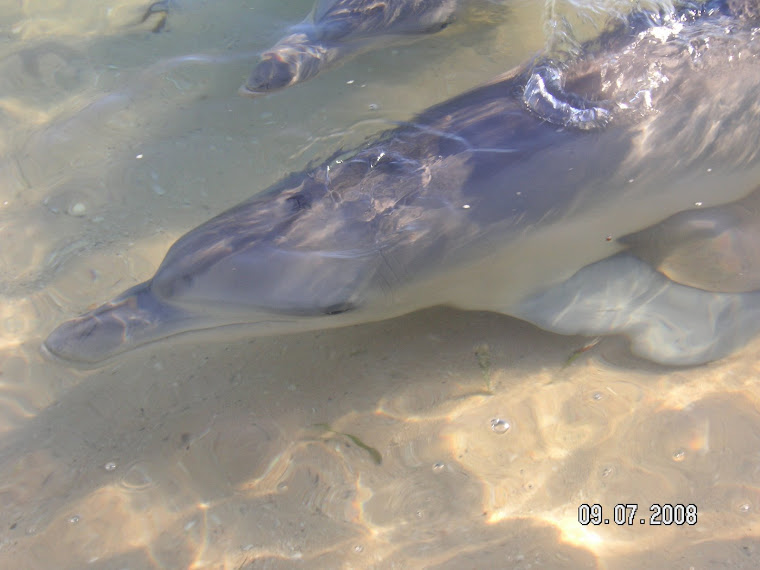 Nou..we hebben er 1 gezien hoor..hahaha..we reden een brug over en Ronald spotte zowaar een crockie!!! Ik boven op de rem uiteraard en vroeg hem ondertussen tig keer of ie me niet in de maling nam, had ie er echt 1 gezien? Zeker weten? Jawel hoor...dus, wij keren (nee, niet op de brug maar zijn braaf eerst even door gereden naar het einde-overigens valt het hier op dat er vele bruggen zijn die helemaal geen vangrail of andere hoge zijkanten hebben wat best eng rijden is soms, zeker omdat de bruggen standaard smaller zijn dan de weg zelf ( je vraagt je af waarom in hemelsnaam!!!?) en als er dan ook nog eens een Roadtrain aan komt, nou...dan minder ik vaart en wacht wel even tot de Roadtrain voorbij is! Wij dus terug naar het begin van de brug en jawel hoor, we zien hem nog net het water inglijden! Het is echt waar, we hebben een echte Saltie gezien! Wow!! Ok ok, niet van dichtbij en niet lang maar toch...het telt wel mee voor ons hoor! Hihihihi....We kijken even en hij blijft lekker half onder het weinige water wat er nog te vinden is in dit poeltje liggen.