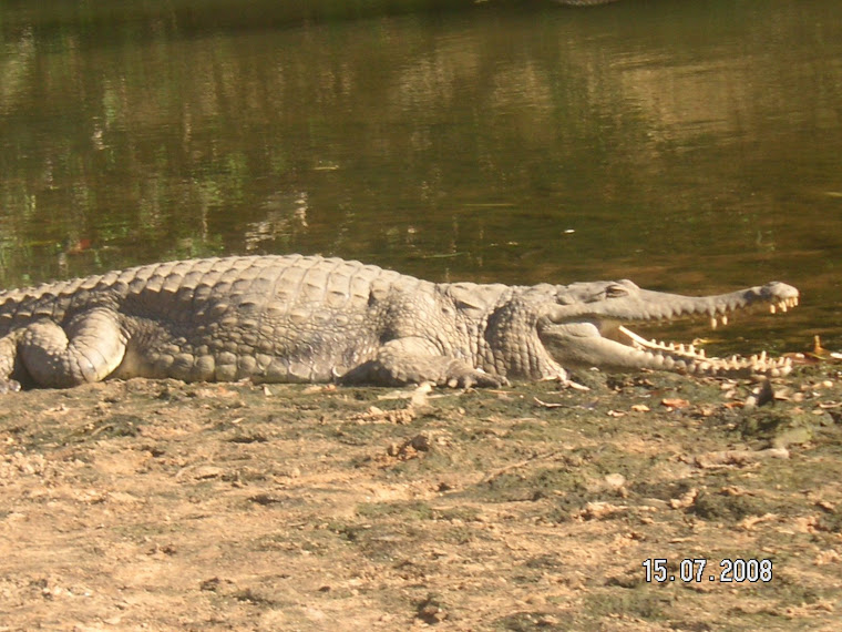Dit gebied barst van de krokodillen, zeggen ze, dus we zouden nu de echte Saltie’s moeten gaan zien. We beginnen al goed, we zien langs de waterkant een wild zwijn op zijn gemakkie rond banjeren, diverse vogels langs de waterkant, we kijken net te laat en horen dat sommige zagen dat een vogel werd gegrepen door een crock! Balen...dat hadden wij ook wel willen zien uiteraard hihihihi... Langs de waterkant zien we zoveel mooie vogels, zelfs kraanvogels, adelaars (zelfs een adelaars nest!!!!) eenden die niet zwemmen en niet kwaken (waarom heten oze dan nog eenden en niet gewoon een vogel ofzo? ), grote, kleine, loopvogels, water vogels en vogels met alle kleuren van de regenboog. Hier en daar zien we zeker wel een crock maar meer dan een hoofdje of een stukje van de crock krijgen we in het begin niet te zien. Na een tijdje warmt het op en zien we dus langzaam inderdaad wat krokodillen langs de waterkant liggen en als de tijd verstrekt komen we ze ook liggend op het land tegen. Echt actie zien we niet maar toch is het wel leuk, nu hebben we ook de Saltie’s in het echt gezien Kunnen we ook weer op het lijstje zetten he!