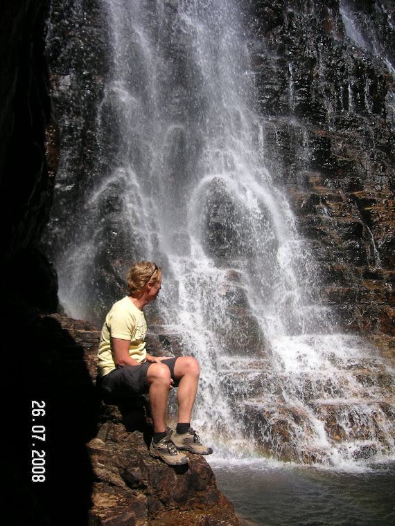 Aan het eind zijn we op de top van de watervallen, heet, dat is het wel, maar om nou te zeggen dat het echt spectaculair is..mm..nou,niet echt eigenlijk. Tuurlijk is het wel een mooi uitzicht boven af, je hoort de waterval naar beneden kletteren en je ziet het een beetje, thans, het bovenste deel dan, en even verderop zie je hoe het de rivier (yellow water river, waar we eerder de bootcruise hebben gemaakt) wordt gevormd en in een mooie kloof verder trekt. Dat is echt wel een mooi gezicht en ook het feit dat je bij de oorsprong van een waterval staat is ook wel bijzonder. We lopen even rond aan de bovenkant, kijken even naar beneden en komen dan tot de conclusie dat het dat eigenlijk al weer was. Om eerlijk te zijn, als ik dat had geweten dan was het de moeite van de wandeling naar boven niet waard geweest..hihihi...maar ja, je weet niet alles van te voren he...wil je ook niet want wat zou het saai zijn als je altijd alles vooraf weet. Dan valt er niets meer te ontdekken, geen verrassingen meer, geen nieuwe dingen meer, nou laten we dat maar niet doen he, ik ben nu al zo snel verveeld en altijd op zoek naar meer, als ik alles vooraf al weet ben ik altijd verveeld, gets, niet leuk voor mij maar ook niet voor de medemens hoor, gezien de vrees van mijn humeur dan hihihi..